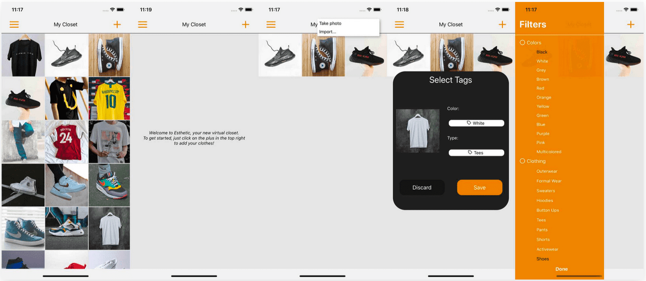 Esthetic is a virtual closet app that will feature an ML algorithm to automatically tag your clothes for you after taking a picture.